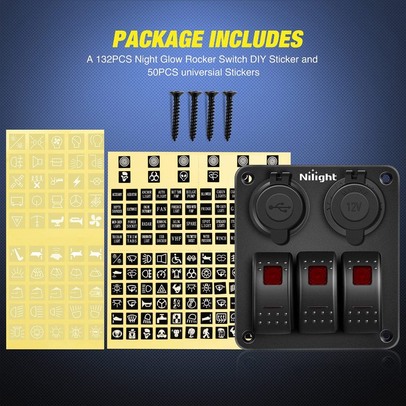 - Package Includes: 1x Pre-wired 3 gang Switch Panel, 4 screws, 2 sets of DIY stickers and a wiring diagram.2 Year Warranty by Nilight.