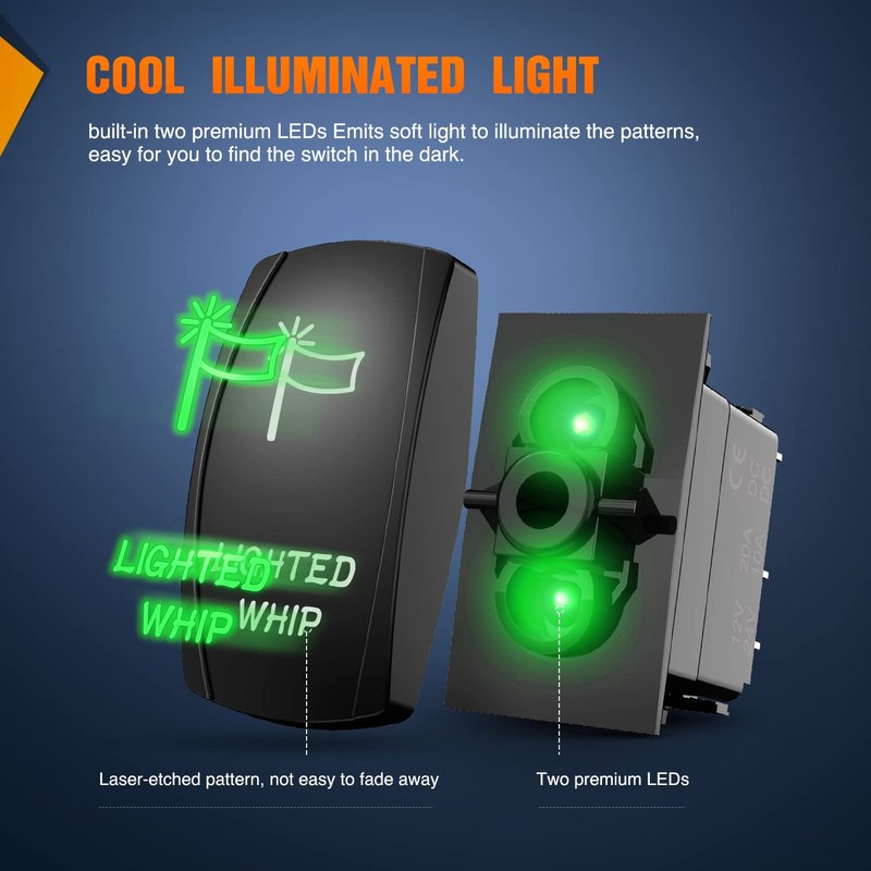 - Wide application: Available for controlling whip lights,LED light bar, LED work lights, fog lamps, driving lights, headlights, taillights, off road lights, etc.