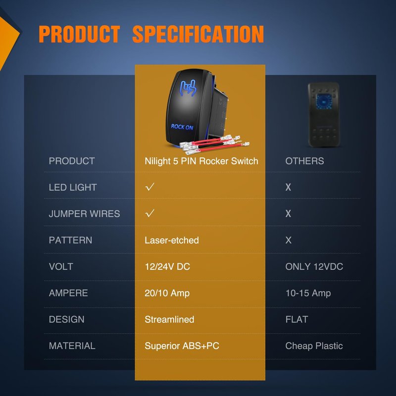 - Package included : 1x 5 Pin Rocker Switch,1x jumper wires set, 1x Diagram. 2 Year Warranty by Nilight.