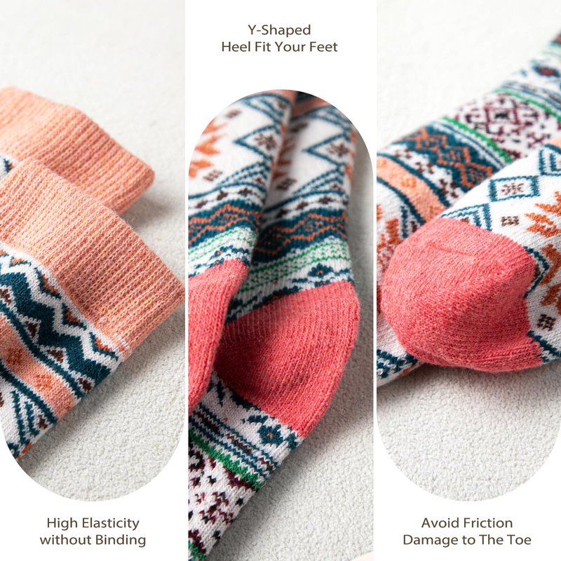 - 🦶 CHIC VINTAGE DESIGN - Vintage and stylish design thermal socks, the patterns are all in different colors, so you can easily match all your outfits and shoes. The retro design of these hiking socks makes you the most striking woman or man in the crowd. Brighten up those chilly winter mornings and keep your feet warm with these close-fitting socks.