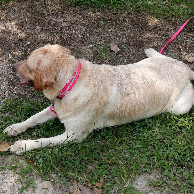 High visibility reflective stripe offers added safety and visibility during evening walks.