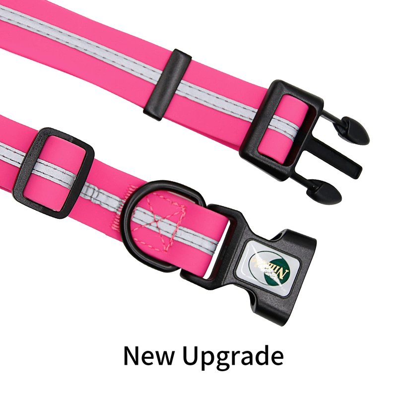 NIMBLE Dog Collar Waterproof Pet Collars Anti-Odor Durable Adjustable PVC & Polyester Soft with Reflective Cloth Stripe Basic Dog Collars S/M/L Sizes (Medium (11.81”-18.5”inches), Pink)
