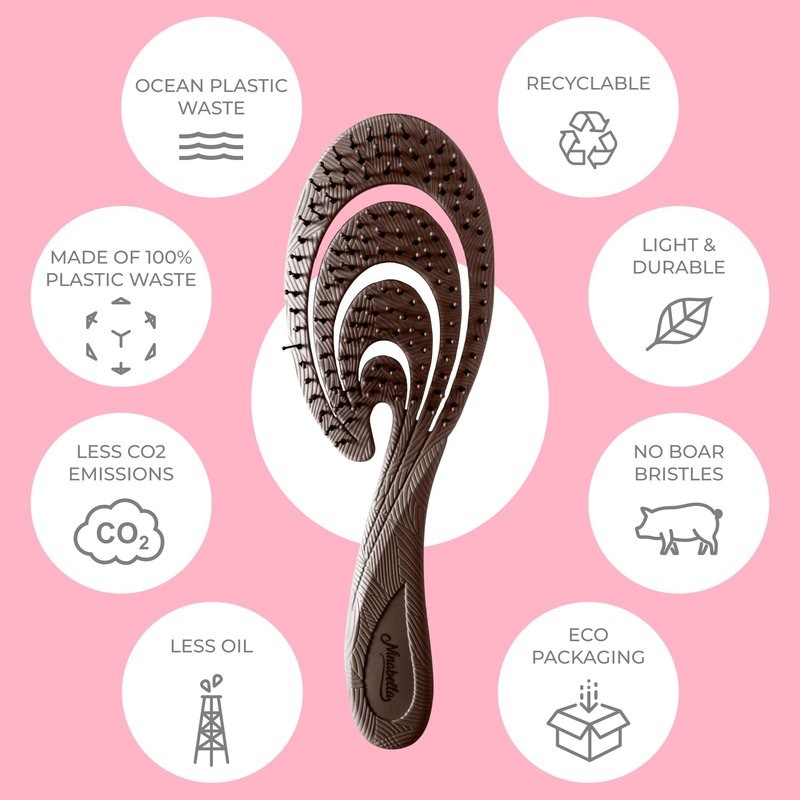 - Sustainable and Vegan: Our organic detangling brush is made of recycled plastic from collected waste from the seas. The brush also doesn't have any rubber coating. It is 100% vegan and has absolutely 0% animal hair in its bristles