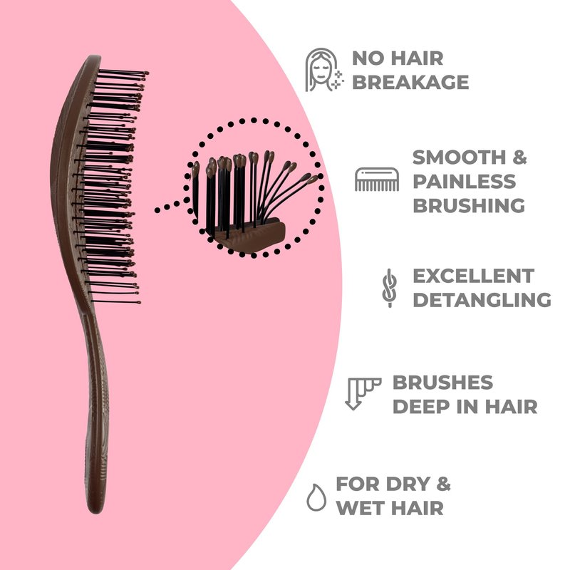 Ninabella Organic Detangling Hair Brush for Women, Men & Children - Does not Pull on Hair - Hair Straightening Brushes for Straight, Curly & Wet Hair - Unique Wave Hairbrush Chocolate Brown