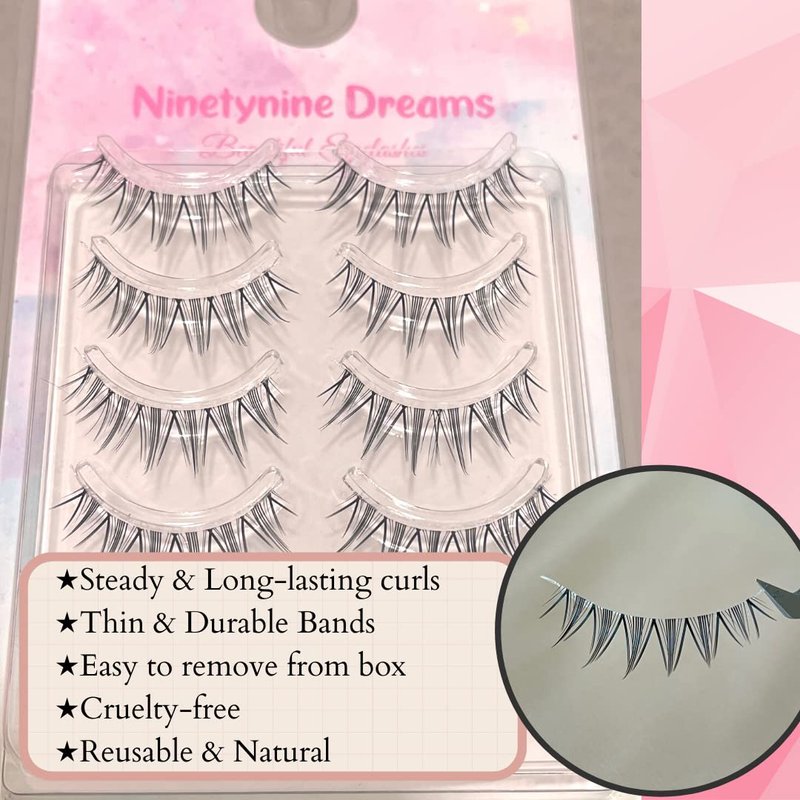 Ninetynine Dreams 5 Pairs Manhua Manga Style False Eyelashes 3D Lightweight Natural Comfortable Clear Band Daily Anime Manga Eyelashes Fluffy Soft Eyelashes Packs