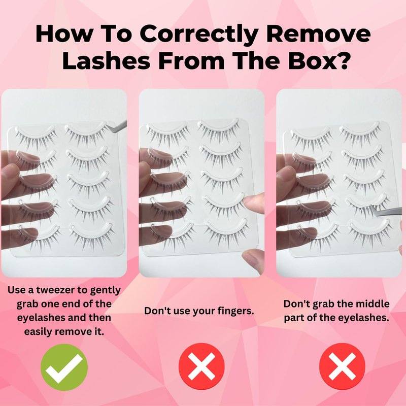 Carefully remove the eyelashes from the case with tweezers