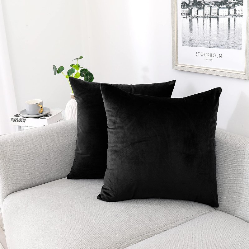 NiNi ALL Decorative Throw Pillow Covers Velvet Soft for Couch Sofa Bedroom Living Room Outdoor Pack of 2 18x18 Inch Black