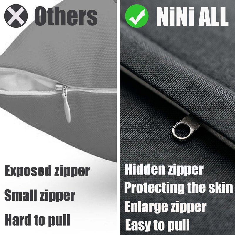 - Hidden & Safe Zipper Design: NiNi ALL outdoor throw pillow covers adopt a new invisible zipper design, which has a sense of design, feels comfortable to use, is not easy to scratch, and protects the skin.