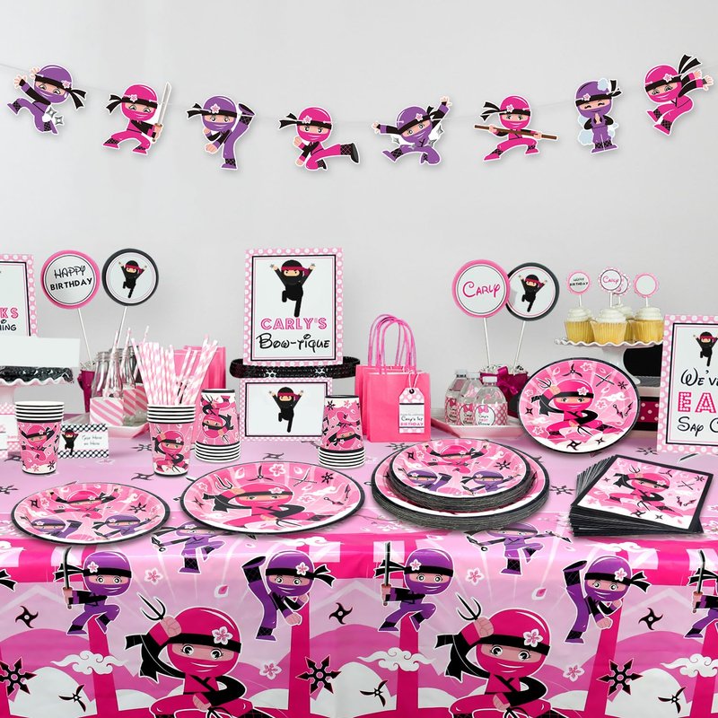 - Unique Design: This Ninja Girl Birthday Decorations Party pack is designed for girls, kids, and women, The design includes female ninjas, cherry blossoms, darts, swords, and other ninja themed elements, Satisfy girls' fantasies about a pink ninja themed birthday party. Using it in your party, this Ninja Girl Birthday Decorations favor will help you create unforgettable memories with family and friends.