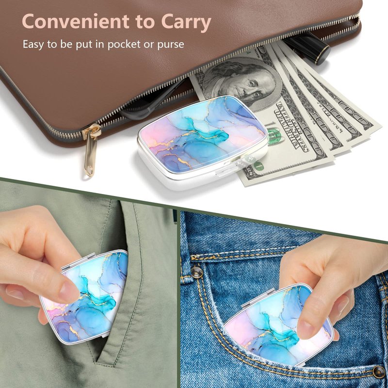 Nipichsha Pill Box, Small Pill Case for Purse & Pocket, Cute Medicine Organizer Travel Pillbox, Portable Pill Container Holder to Hold Vitamins, Medication, Fish Oil and Supplements, Colorful Marble