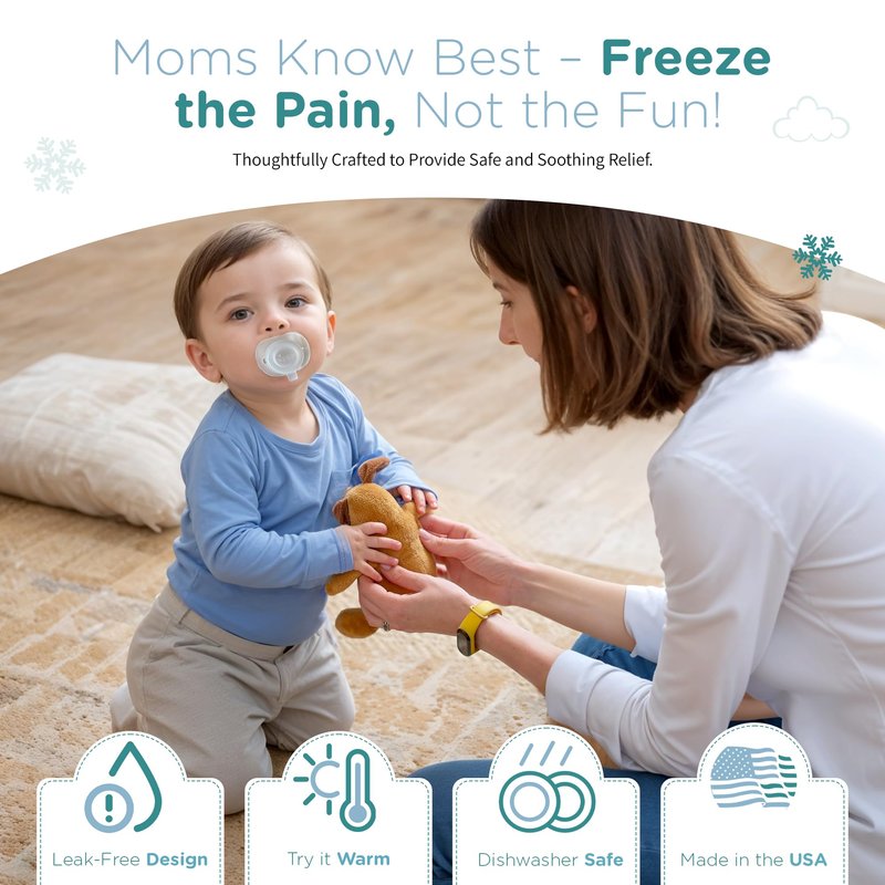 - Proudly Made in the USA: Our Orthodontic Teether Pacifier is crafted with care in the USA, combining innovative cooling technology with a sturdy, safe design. These teething toys 3-6 months give parents a trustworthy solution for relieving teething discomfort, delivering top-notch quality and reliability.