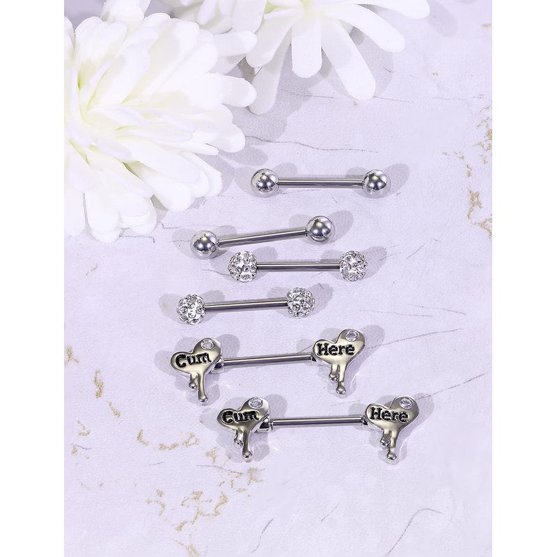 Nipple Piercing Kit 6 Pieces 14G Stainless Steel Nipple Piercing Jewelry Piercing Needles and Piercing Clamp Straight Heart Shape Nipple Rings Tongue Ring Barbell Body Piercing Jewelry Tools Silver