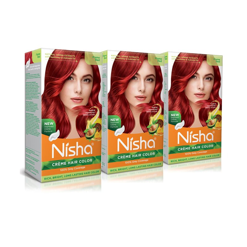 Nisha Creme Hair Color Flame Red (pack of 3)