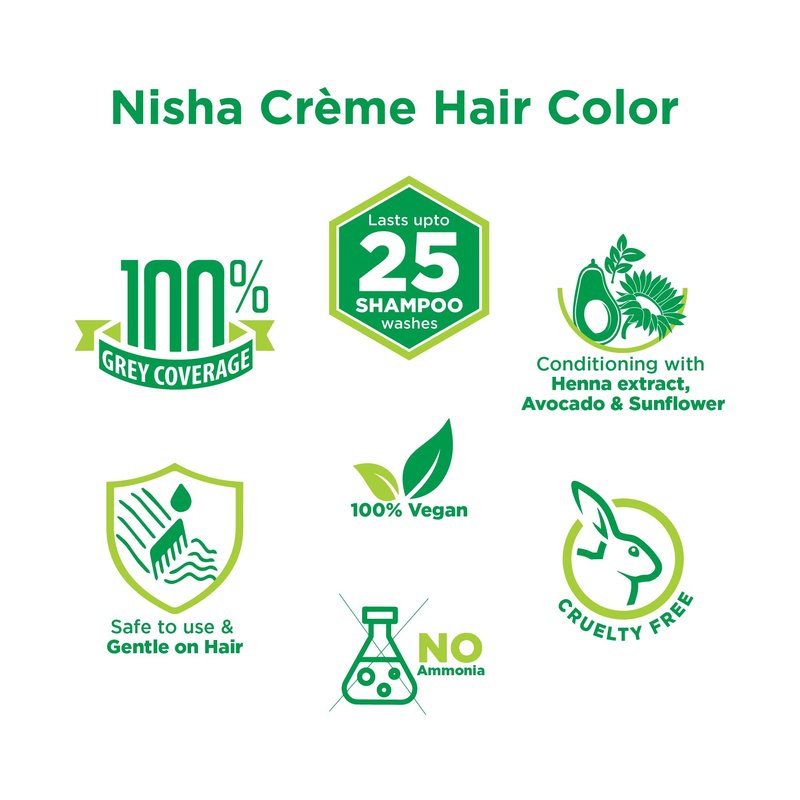 Nisha Crème Hair Color is a crème-based hair color with the benefits of Sunflower, Avocado, and Henna extracts, these herbs constitute a perfect blend for hair color. This nourishing hair color not only covers your greys but also makes your hair soft, silky, and stylish. This rich, bright & long-lasting color is available in 18 beautiful shades. hair color, highlights hair, best hair color, best hair colour for women, hair dye, highlight hair colour, hair color for men, hair color for women, hair colour shampoo, balayage hair color, global hair colour, balayage color, balayage hair, best hair color for men, color highlights, hair highlights for women, highlights hair color, natural hair colors, ombre hair color, black hair with highlights, natural black hair colour, black hair dye, black hair colour, brown black hair color, balayage on black hair, black hair with blonde highlights, brown highlights on black hair, burgundy highlights on black hair, caramel highlights on black hair, dark brown highlights on black hair, hair color for black hair, hair highlights for black hair, hair colour chalk, hair colour for women, hair colour, bigen hair color natural black, black, black henna, black hair spray, organic hair colour black, shampoo hair colour black, khadi hair colour black, beauty blanc fruit vinegar black gel colour, indigo powder organic for hair black, hair colour black, hair color shampoo black, black henna powder for hair, true tone hair dye stick black, herbal hair colour black, organic black hair colour, black henna for hair men, natural black hair color, hair black colour gel, black rose kali mehandi, hair black powder, black hair color, blue black hair color