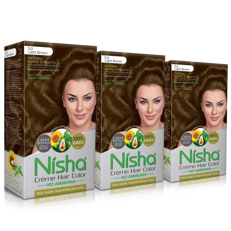 Nisha Creme Hair Color Pack of 3 Light Brown,Beautiful Color Permanent Hair Dye,Long-Lasting High-Definition Color,Shine & Silky Softness, Permanent Hair Color,Ammonia Free, Vegan, Cruelty Free