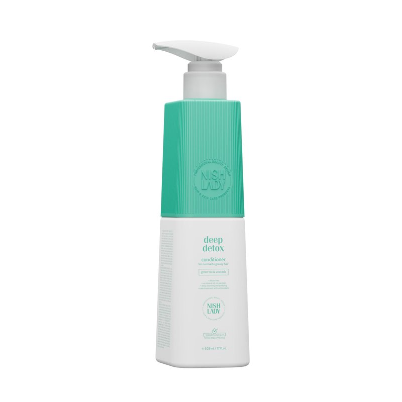Nishlady Deep Detox Clarifying Shampoo for Normal to Greasy Hair, 503 ml | Green Tea & Avocada Extracts (Conditioner)