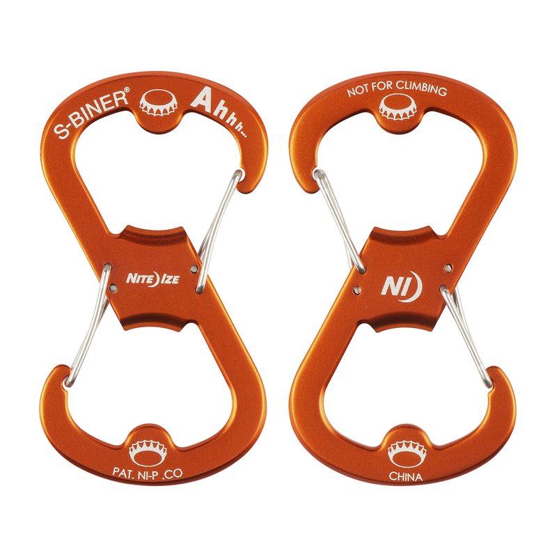 - DUAL CARABINER BOTTLE OPENER - This S-Biner Dual Carabiner helps you do everything from attach, carry and hang, to pop a few tops with one convenient accessory