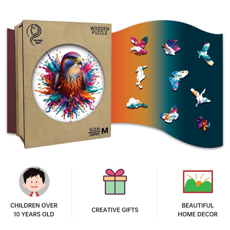NIUNIUAMY Wooden Puzzle, Falcon Pattern Art Painting, Adult Wooden Puzzle, Animal Pattern Wood Carving Puzzle Designed for Family and Friends, 11 * 11 inches, 200 Pieces (Medium)