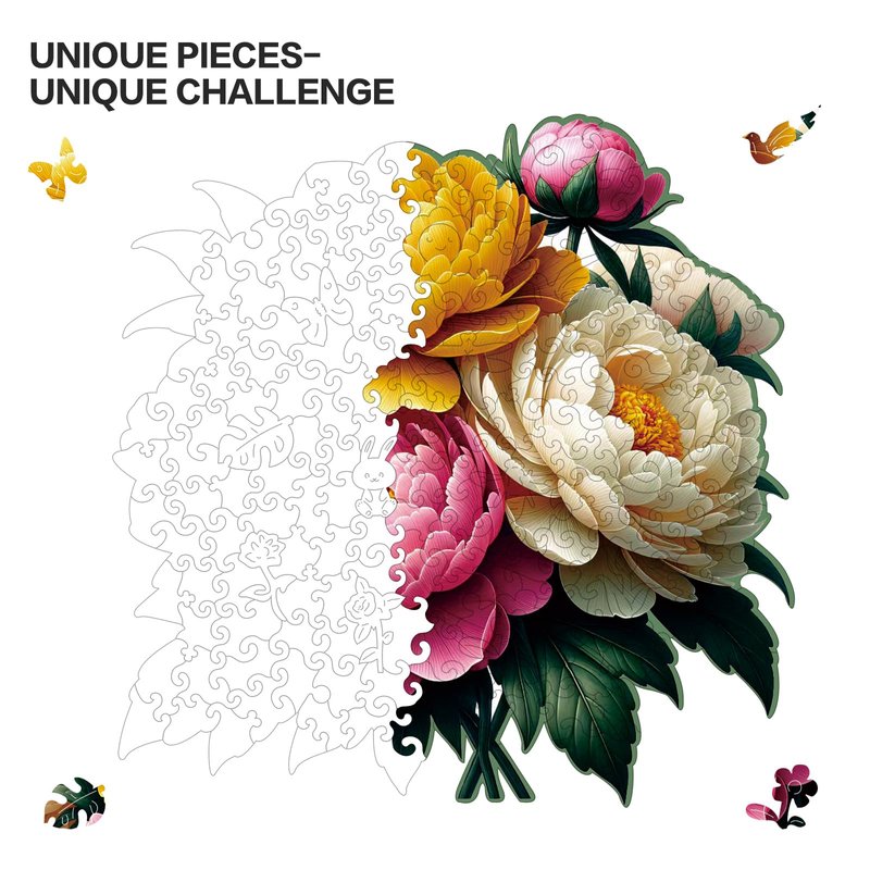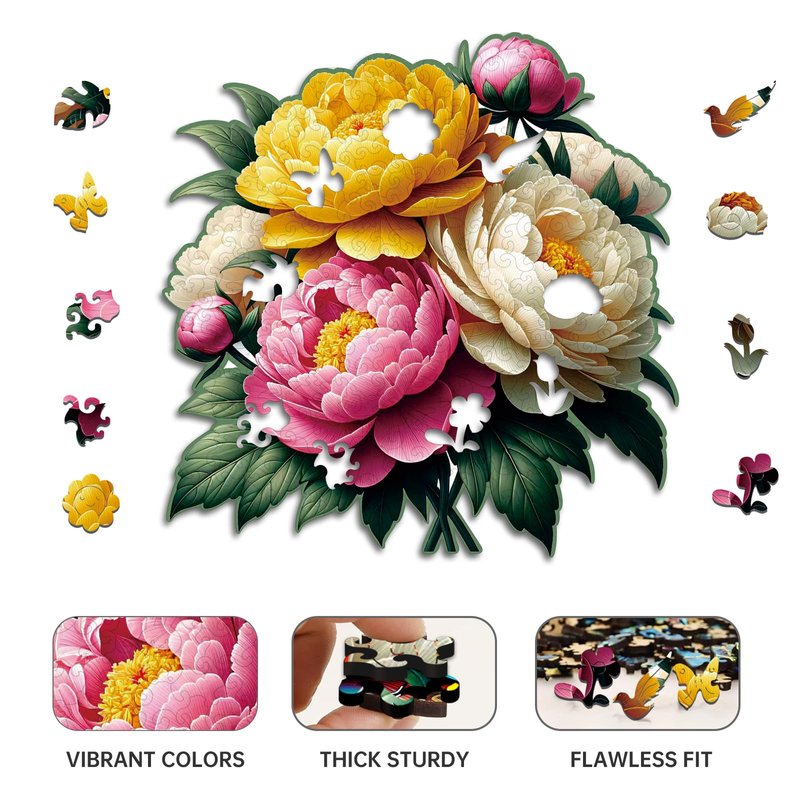 Immerse yourself in the captivating beauty of nature with this wooden peony flower jigsaw puzzle. Perfect for adults, children, and teenagers alike, this puzzle offers a delightful challenge and a serene escape from the hustle and bustle of daily life. Meticulously crafted from high-quality wood, each piece is a work of art, intricately shaped to form the stunning petals and vibrant colors of the peony flower. As you assemble the puzzle, you'll be transported into a world of tranquility, where the intricate details and vibrant hues come together to create a masterpiece. Whether you're a seasoned puzzler or a newcomer to the hobby, this puzzle promises hours of engaging entertainment and a sense of accomplishment upon completion. With its captivating design and eco-friendly materials, this wooden puzzle makes an ideal gift for birthdays, Christmas, Mother's Day, Father's Day, or Valentine's Day, bringing joy and appreciation for nature's beauty to your loved ones. Embrace the therapeutic benefits of puzzling and lose yourself in the enchanting world of the peony flower.
