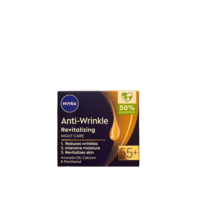 Nivea Anti-wrinkle + revitalizing night care face cream anti-aging 55+ with avocado oil, calcium and panthenol 50ml / 1.69 oz