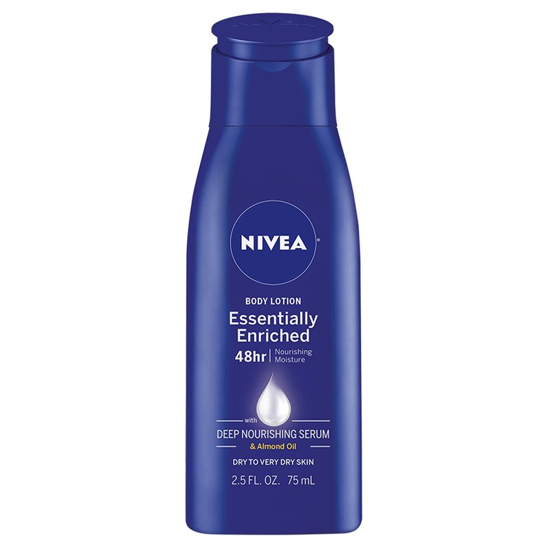 NIVEA Essentially Enriched Body Lotion, 48 Hour Moisture For Dry to Very Dry Skin, 2.5 Fl Oz