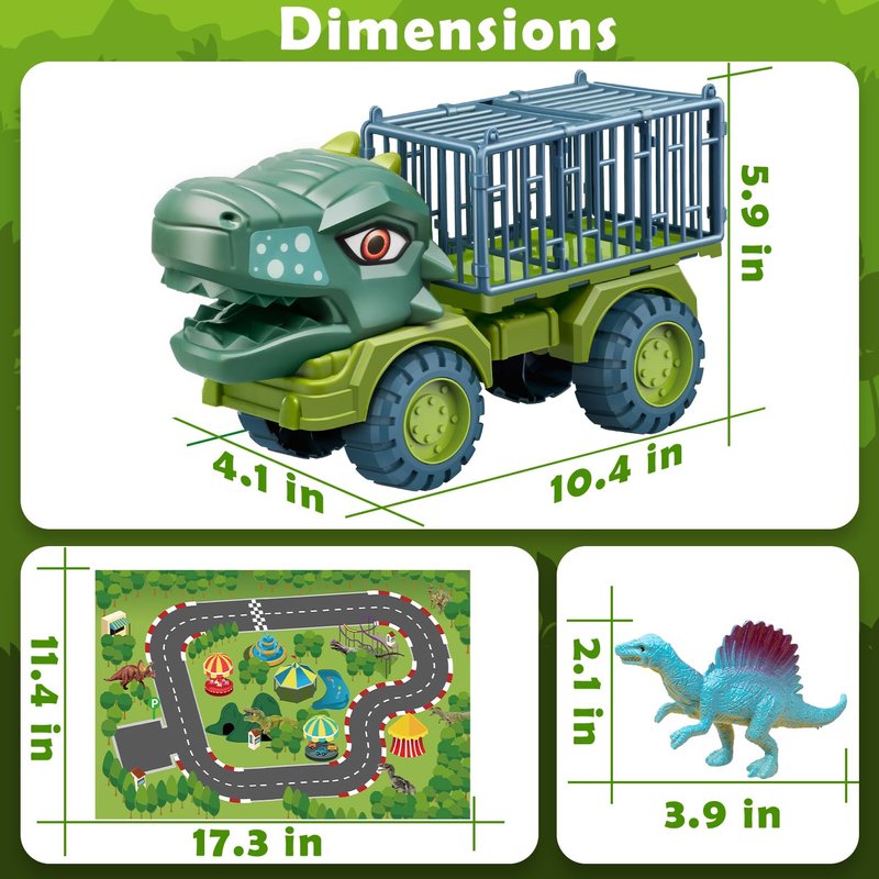 - 【Realistic Dinosaur Transport Truck】: Unleash the fun with the dinosaur transport truck! Dinosaurs from the dinosaur world are waiting for you. The truck is designed to transport prehistoric creatures with its realistic Tyrannosaurus head and spacious cage. All dinosaurs can be captured into the cage. Our Dino play set creates a wonderful zoo for children to explore. It’s a very excited and fun dinosaur toys for ages 2-4.