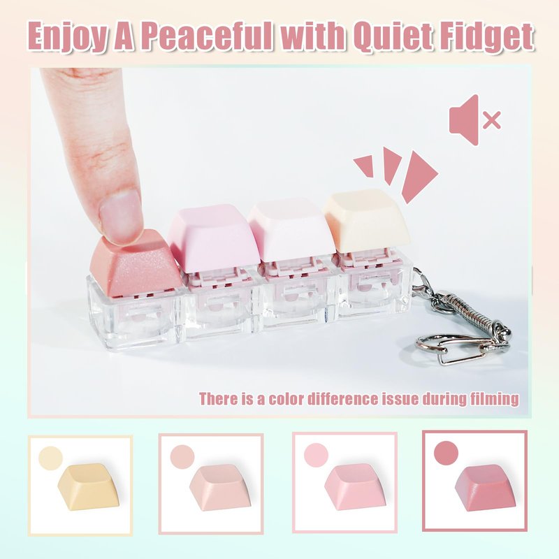 - 【Quiet Keyboard Fidget Toys】NiXianLingo keyboard fidget set includes a quiet and a loud option. The pink is the quiet fidget keyboard, which is equipped with 4 quiet switches to help relieve your stress without disturbing others. Click this silent fidget keyboard in schools, libraries, and offices to make your mind more focused!