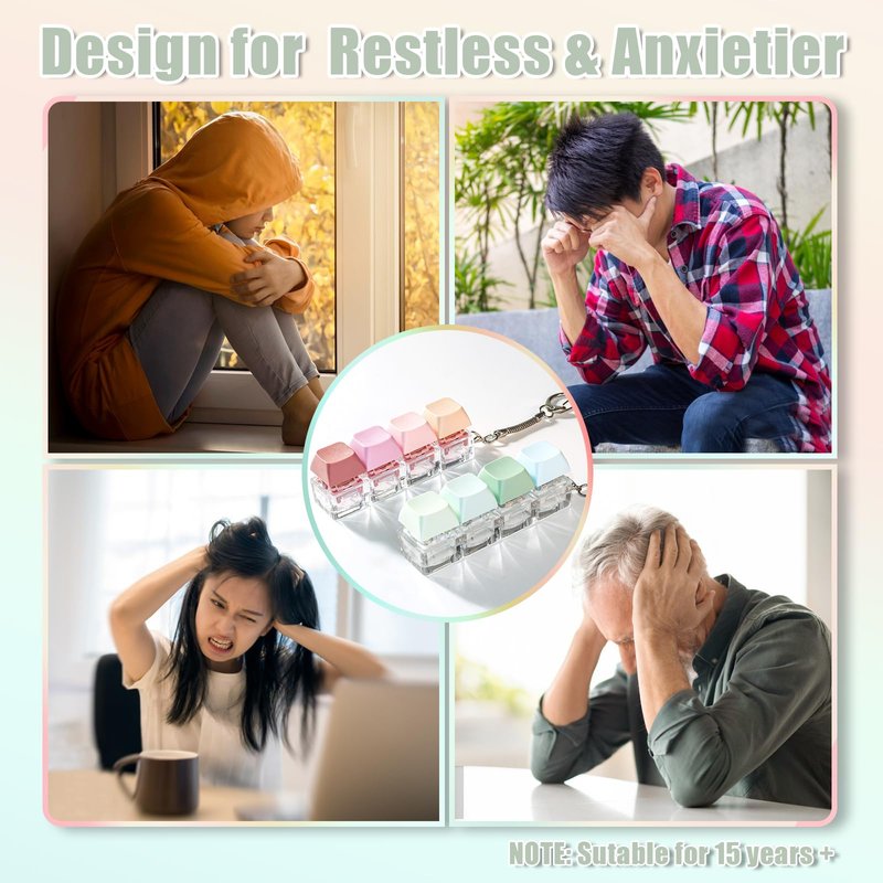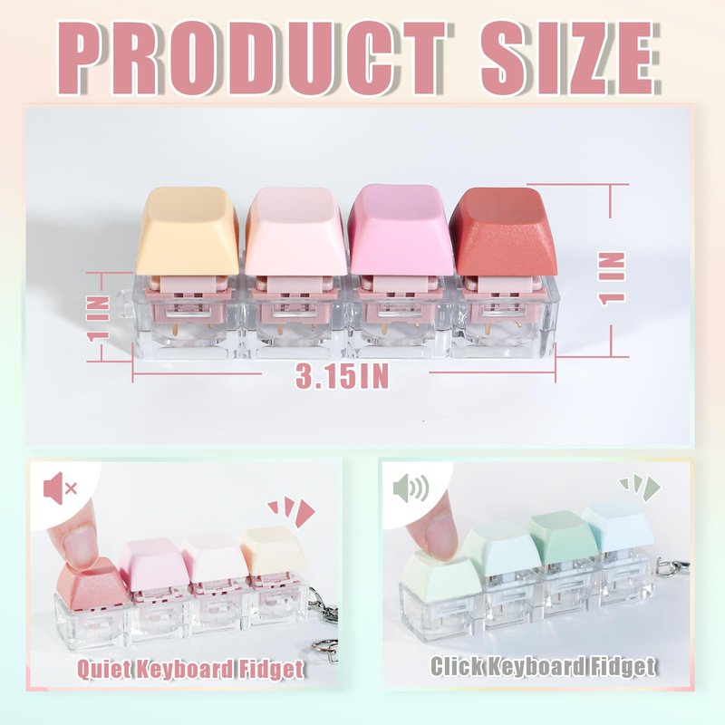 Customized for Anxious Individuals, keyboard Fidget Healing Toy In order need the anxiety groups, NiXianLinGo keyboard fidget toy that combines a quiety version and a standard clicking version. Intended to bring unprecedented moments of relaxation to everyone. Color Is The Spiritual Healer of Nature Whether it's the fresh and elegant light green, the warm and comfortable light pink, or the serene and profound dark green, each color has been carefully considered, aiming to touch the peaceful corners of your heart. NiXianLinGo believes that color has the power to heal people's hearts, and this keyboard fidget keychain is the perfect carrier of this power. Here, not only can you find pleasant color combinations, but you can also feel the spiritual release brought by colors. Immerse Yourself In The Click Sound and Explore Your Relieving Way Silent Version: Equipped with a fully quiet keyboard switch, this quiet keyboard fidget ensures that every click is quiet, allowing thoughts to jump at fingertips while the surrounding world remains harmonious. Clicking Version: Equipped with a clear and crisp sounds keyboard switch, each precise click effectively helps users release their inner stress and anxiety, leading you into a peaceful harbor of the soul. Raise the keycaps to make every keystroke more comfortable High key cap: 1) More substantial and powerful when struck 2) Clearer tapping and paragraph feel 3) A clearer and louder sound Short keycaps: 1) Weak sense of force when striking 2) More jerky tapping and paragraph sense 3) A gentler sound What will you get? 1 silent keyboard toy (pink series) 1 typing keyboard toy (green series)