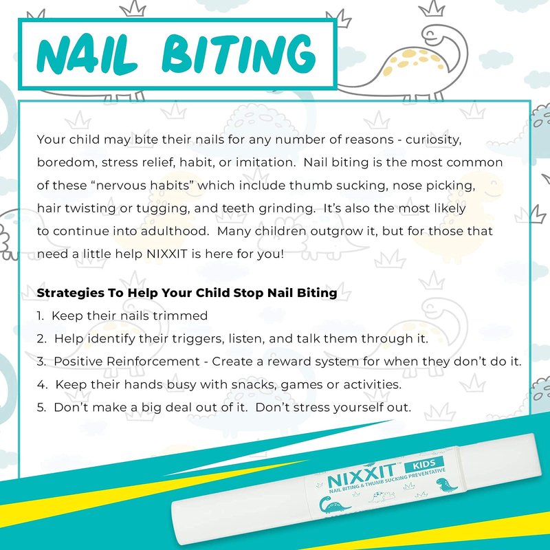 - BREAK THE HABIT FOR GOOD - NIXXIT Nail Biting Pen will help you break the habit once and for all. As a parent and former nail biter we understand the struggle. Does your kid bite their nails & haven't found a solution? After years of research we’ve created the product we wish we had for our kids, our bitter but safe formula will help stop your kids habit.