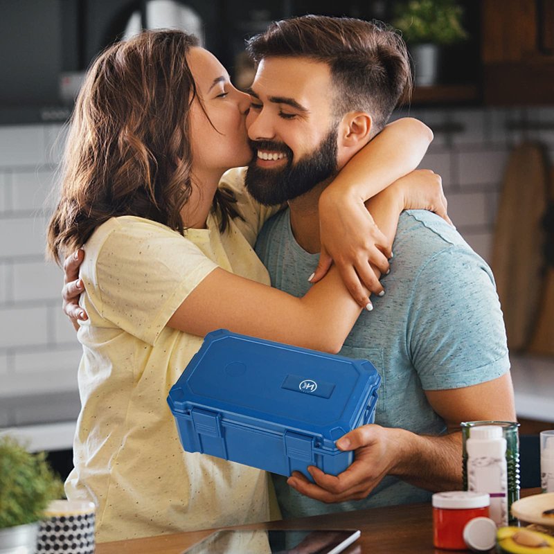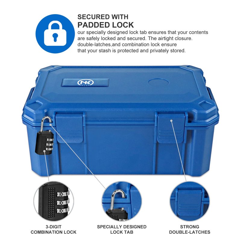 NKTOLEE Blue Storage Box ABS Plastic Storage Container with Lock - Smell Proof Waterproof Box Suit for Travel Storage Box Smell Proof Humidor Box