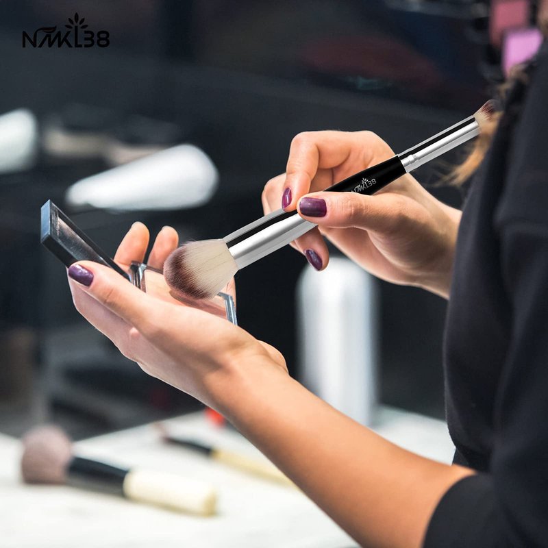 NMKL38 Double Ended Complexion Brush Face Concealer Powder Makeup Brush, Blending Liquid Foundation, Cream Cosmetics - Black Handle, Vegan Brush, Cruelty Free