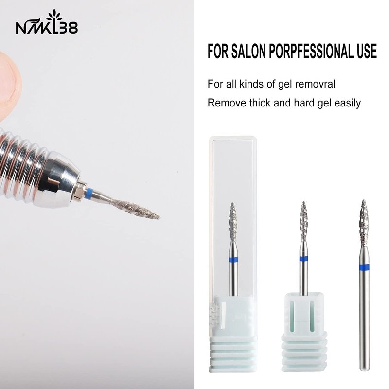 NMKL38 Tornado Flame Diamond Nail Drill Bit 3/32" Manicure Cutters Rotary Burr Drill Accessories Spiral Nail Mills Tool (A-M)