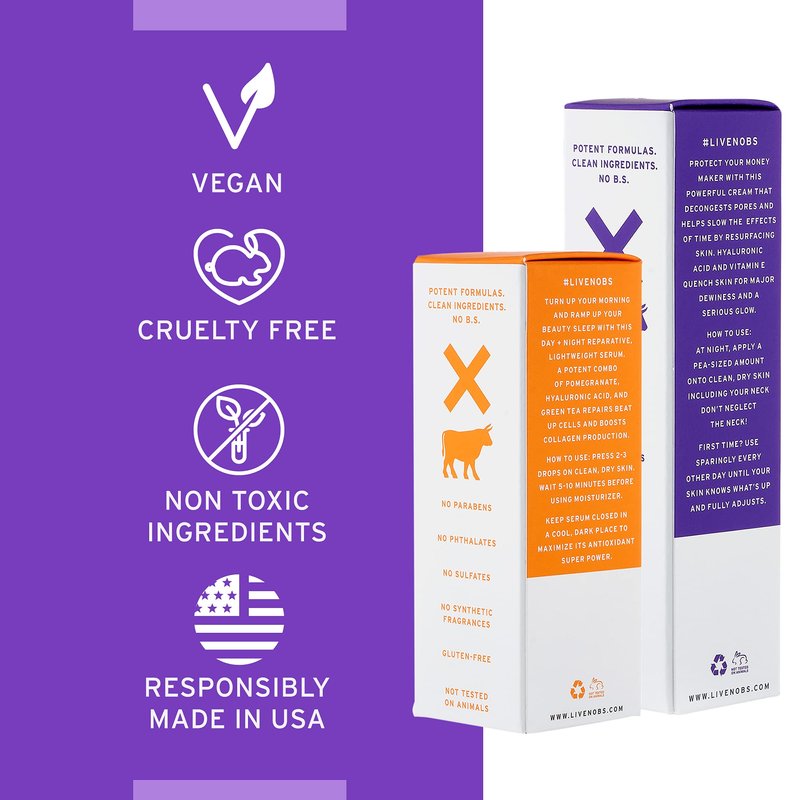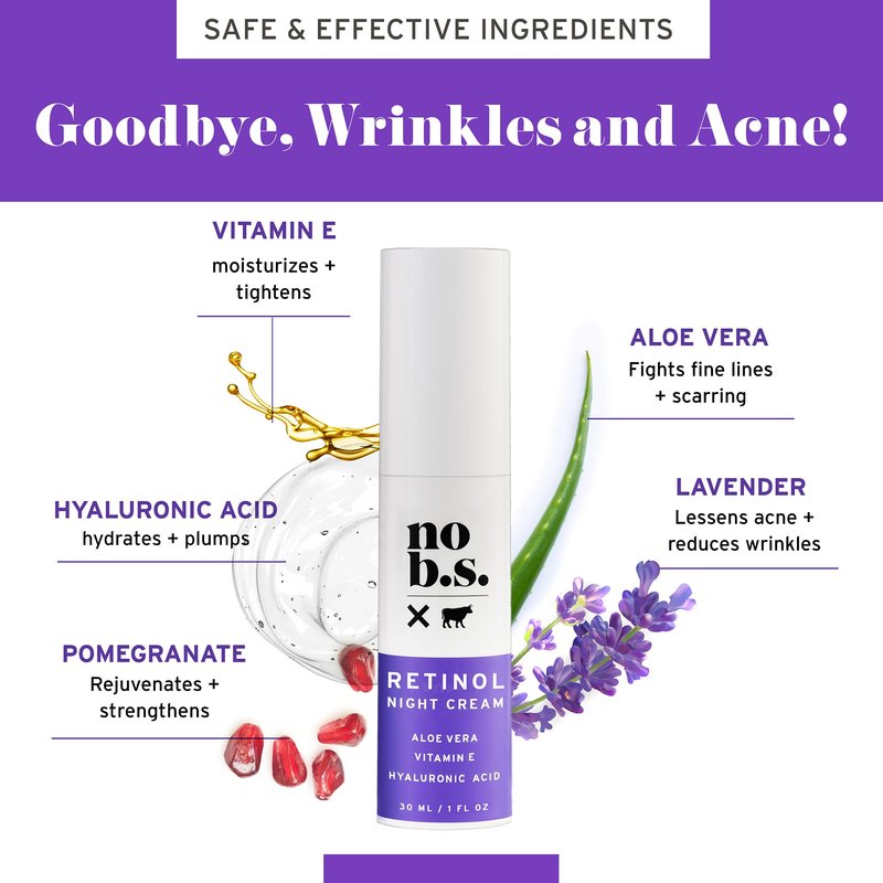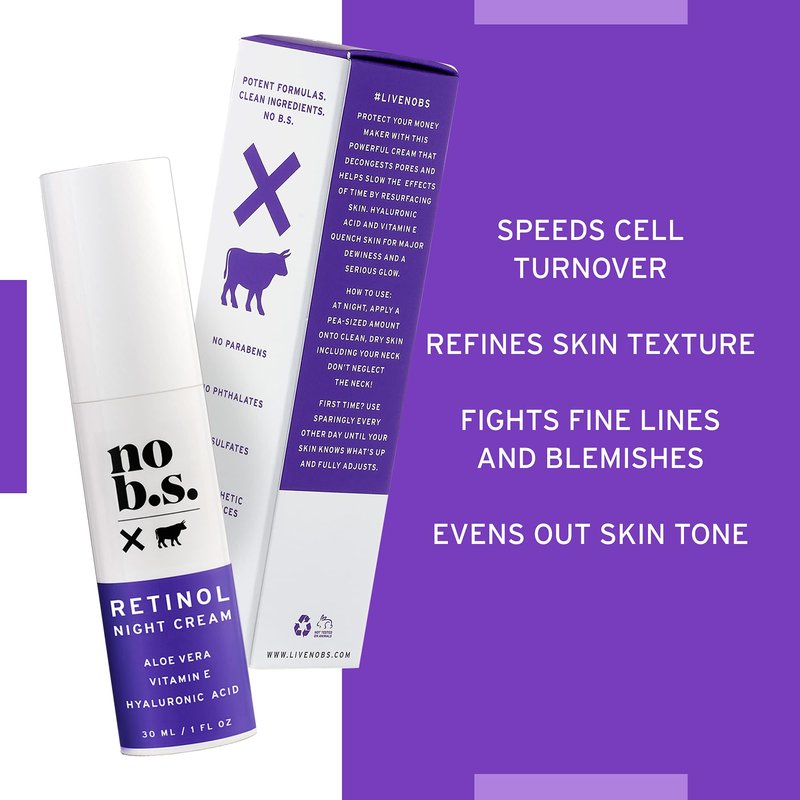 No B.S. (No Bad Stuff) Vitamin C + E Serum & Retinol Night Cream Duo, Face Serum with Hyaluronic Acid, Vitamin E, Night Cream with Retinol & Aloe Vera, Skin Care for Women & Men, Vegan, 1 FL Oz Each