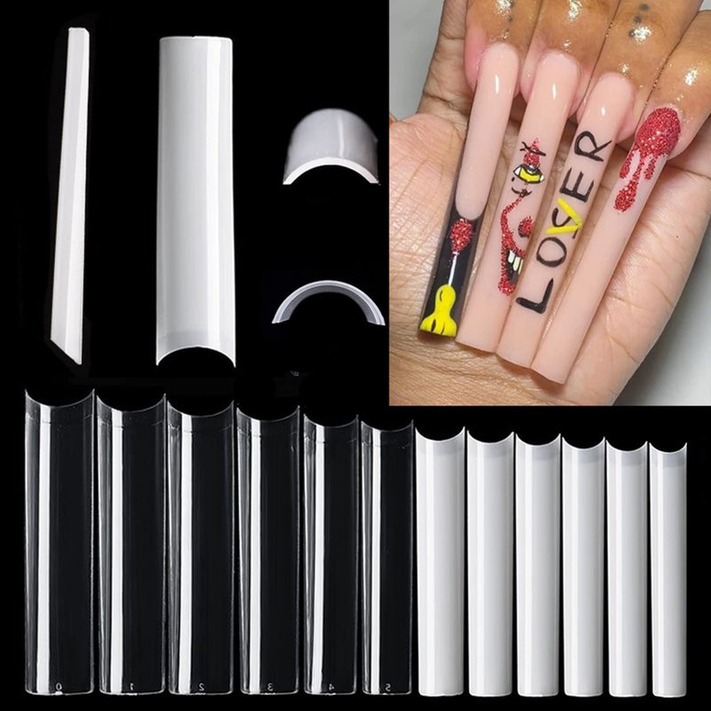 - 500pcs No C Curve XXL Square Straight False Nail Tips Half Cover Clear Skin color Extra Long Fake Nails offer 10 different sizes with 50 nails,which is pre-numbered 0-9.So,you can easy to mark it and keep track of, meet more finger nails.short length, stronger don't crack or chip, Wear comfortable, does not affect any work by hand