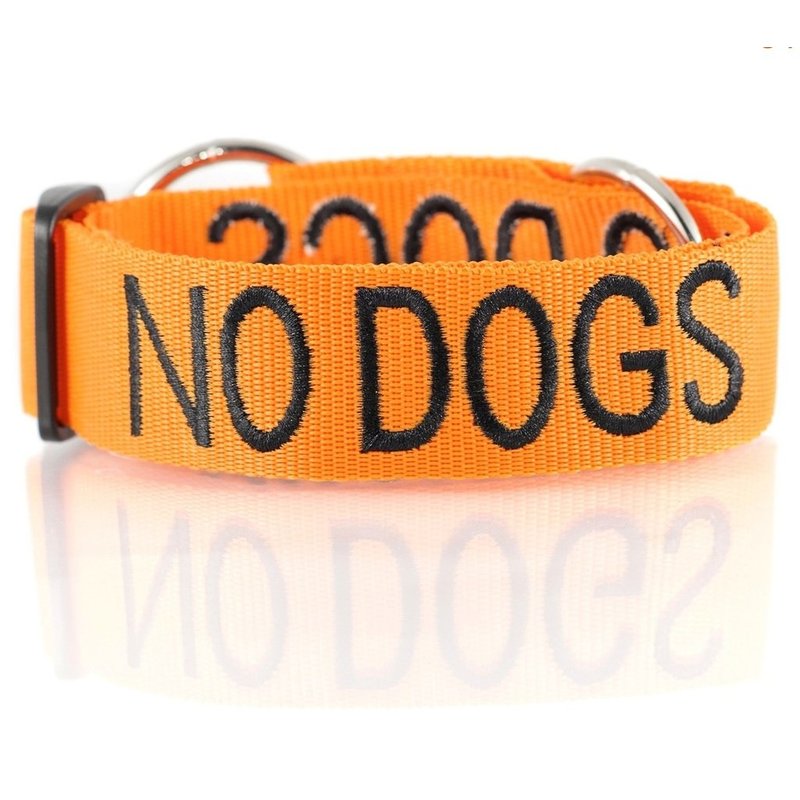 NO DOGS Orange Color Coded Semi-Choke Dog Collar (Not Good with Other Dogs) Prevents Accidents by Warning Others of Your Dog in Advance
