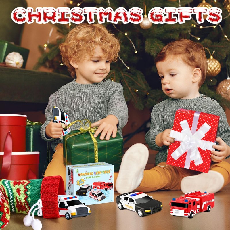 - Play and Imaginative Learning: Meticulous restoration of the real car body lines and patterns, with three vibrant colors and realistic car designs—police car, fire rescue, and ambulance,these toddler bath toys capture kids’ attention, encouraging imaginative play and enhancing cognitive skills through pretend driving. Bathtub toys serve as sensory toys, promoting recognition of each vehicle's purpose and colors and nurturing their imagination! Watch as your child navigates their own watery!