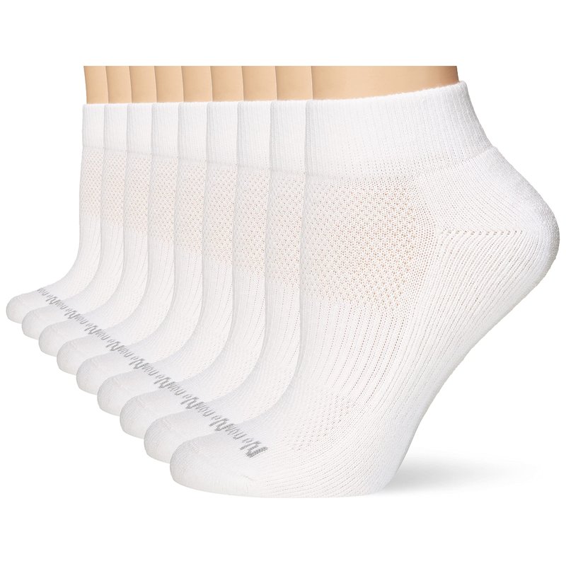 No nonsense womens Soft & Breathable Cushioned Quarter Top Running Socks, White - 9 Pair Pack, 4 10 US