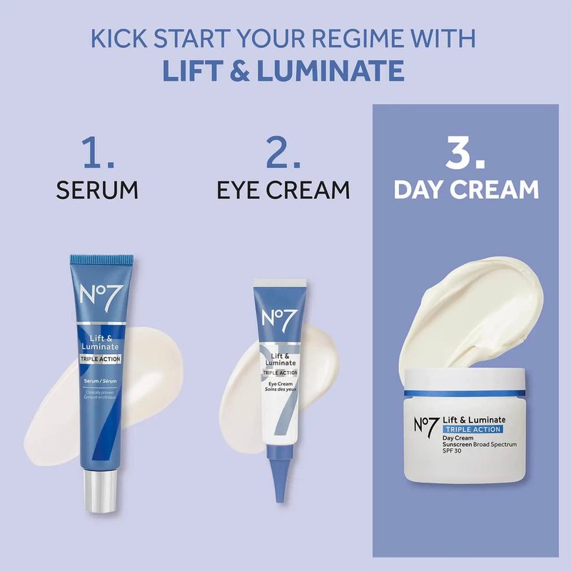 - Real Results - In a consumer study of UK women, No7 Lift & Luminate day cream helped their skin tone look more even in just 2 weeks.* This daily face moisturizer is also suitable for sensitive skin.
