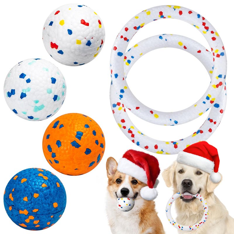 - LIGHTWEIGHT TENNIS & FLOATING BALLS - the 2.75-inch dog ball (6.9-inch fly ring) won't let your pup swallow it. The lightweight nature of the E-TPU material not only allows you to take the ball anywhere for your pup to play with. It also allows the dog ball to float in the water, allowing the dog ball to accompany and train your puppy in water such as beaches and swimming pools.