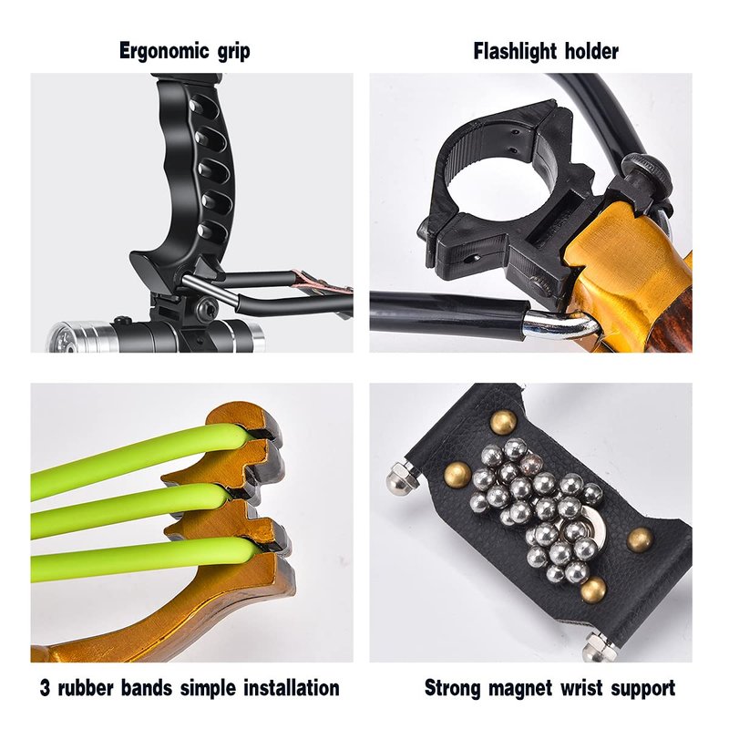 - PRECISE SHOOTING: adjustable wrist brace and golden proportions slingshot makes you precision hunting, this slingshot also good for a beginner