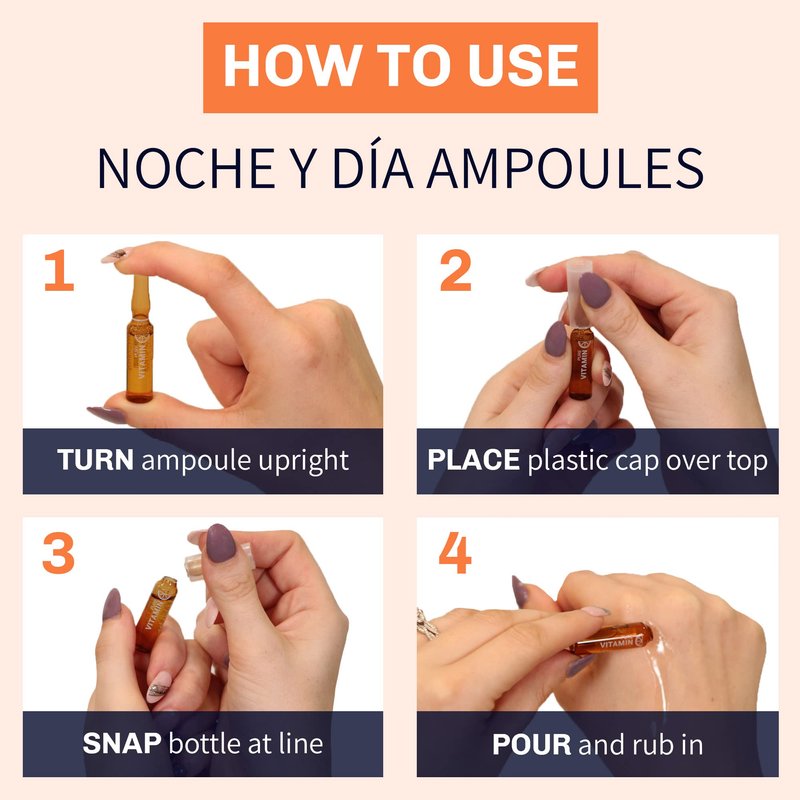 Noche Y Dia Vitamin C Ampoule Oil - Anti Aging Face Moisturizer Serum with Ascorbic Acid - Hydrate and Firm Skin - Boost Collagen - 12 x 2mL (.07 fl oz)
