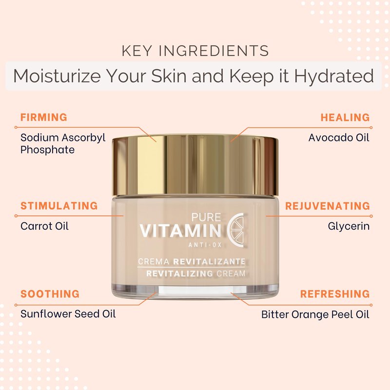 - HYDRATING CREAM: Our vitamin C cream contains sodium ascorbyl phosphate, a stable form of vitamin C, and glycerin, a natural moisturizer found in our skin. This combination effectively maintains a healthy lipid balance, protects against irritation and inflammation, restores the skin barrier, and delivers exceptional hydration benefits.