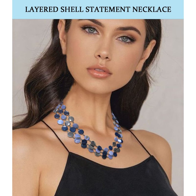 Noessla Layered Beaded Chunky Necklace for Women Boho Two-color Shell Statement Necklace Fashion Collar Costume Jewelry Gifts for Mum(Blue)