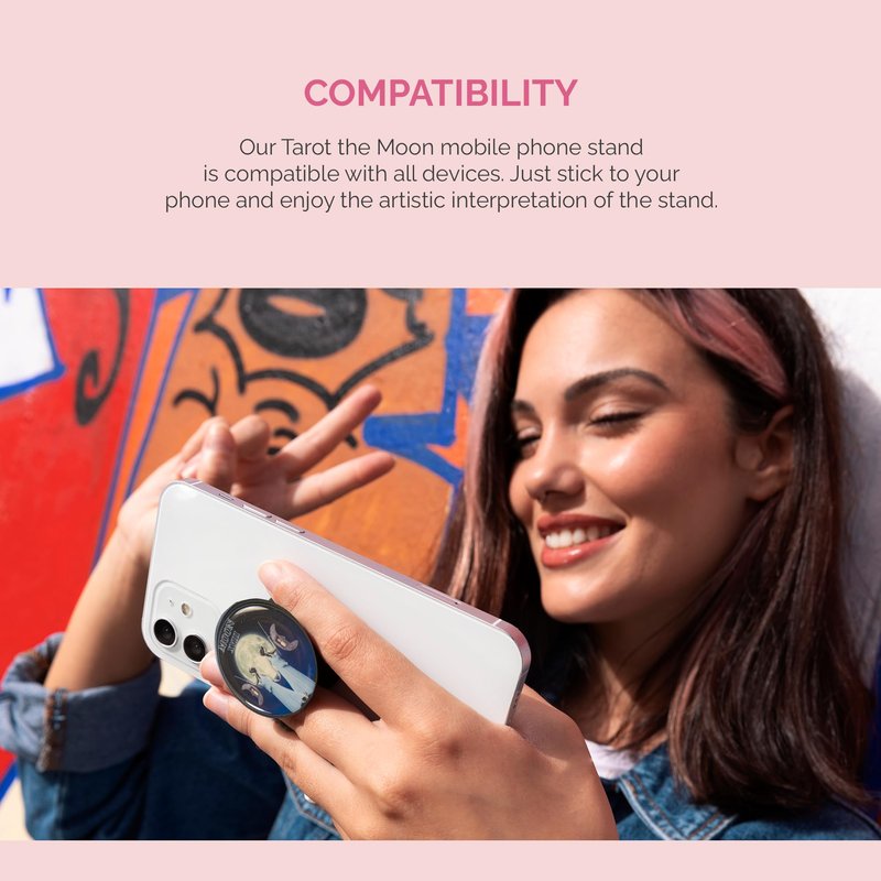 - Embrace the mystical power of the Moon: Unlock your intuition with this captivating phone stand adorned with the Moon tarot card. Its symbolism encourages trust in your instincts and warns of hidden truths lurking beneath the surface.