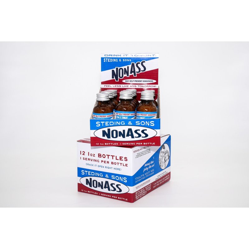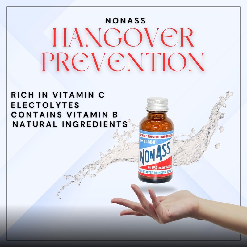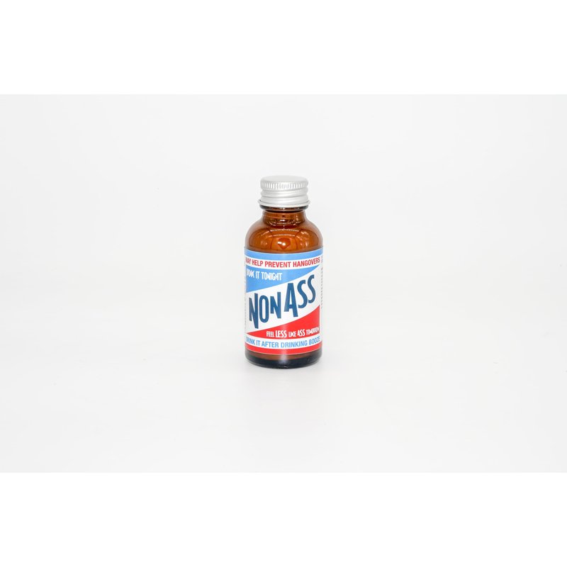 Get ready to make the most of your night out! NONASS is your ultimate party companion, designed to help you feel refreshed and ready to conquer the day after. Packed with a powerful blend of Milk Thistle, B Vitamins, Electrolytes, and White Tea Extract, NONASS is formulated to support your well-being. Don't let a rough morning dampen your fun. Grab your NONASS and dance the night away! Sold in 1 oz bottles. Feel Less Like Ass Tomorrow!
