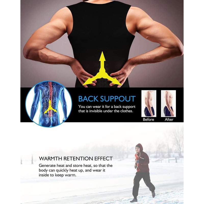 - Sauna vest with zipper intensifies perspiration in your core by up to 3 times more than regular gym clothing,sauna suit fits snuggly around your midsection, working its magic from your shoulders, down to your waistline, work as waist trimmer, meanwhile helps posture for back and abs as you workout