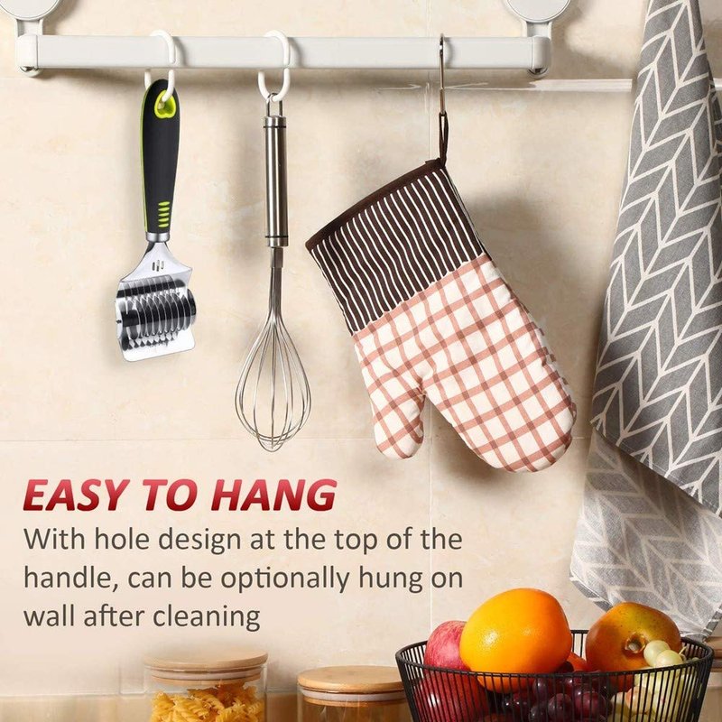 - Multi-wheel design: the noodle grid roller is driven by 9 pieces side by side, which can cut eight even-sized noodles, the top of the handle has a hole design, and you can choose to hang on the wall. 360 degree cutting 360 degree flip The cutting model is neat and let the operation more convenient.