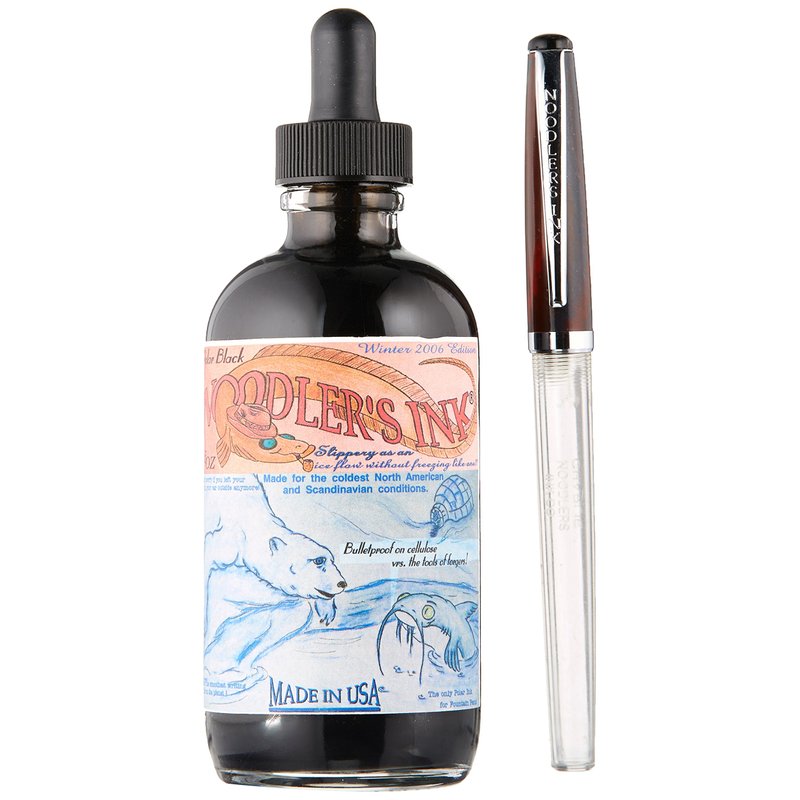 Noodler's Ink Refills Polar Black 4.5oz w/ Free Fountain Pen Bottled Ink
