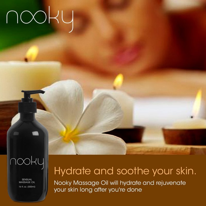 Nooky Massage Oil with Premium Natural Ingredients. Relaxing Essential and Sweet Almond Oils for Massaging 16 Ounces