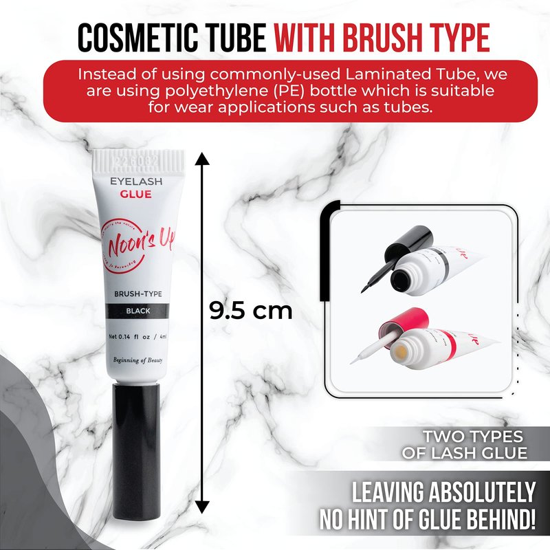 - SECURED CARE. Be confidently beautiful with our lashes glue, rigorously examined to ensure it's 100% gentle for your precious eyes. Application is a breeze with our innovative PE cosmetic tube featuring a brush that leaves no trace of glue behind and elevates your lash experience to new heights.